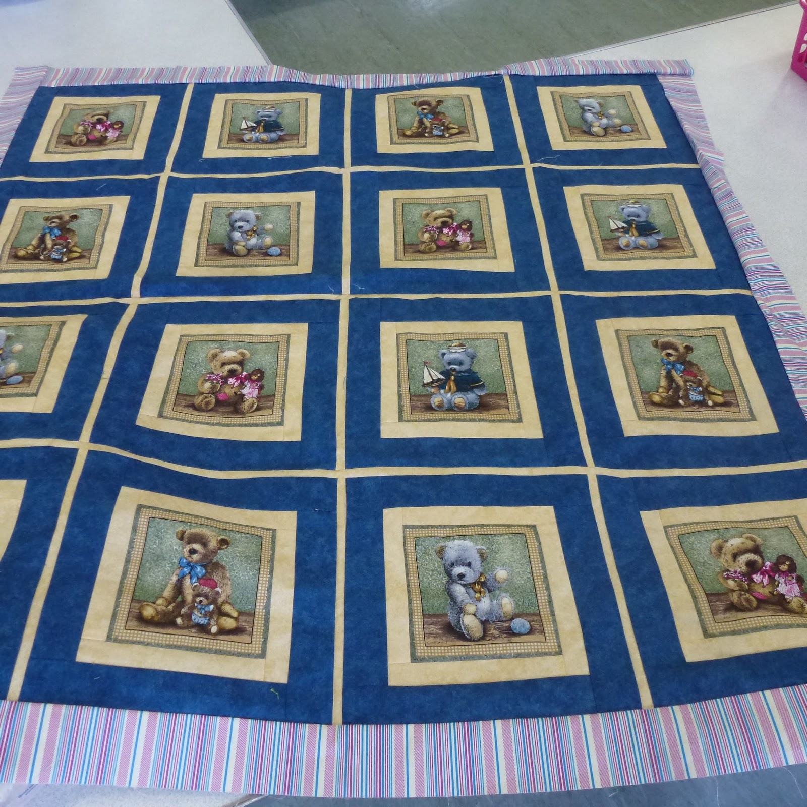 | Janet made this one, too, by bordering the teddies and adding sashing to break it up a bit |